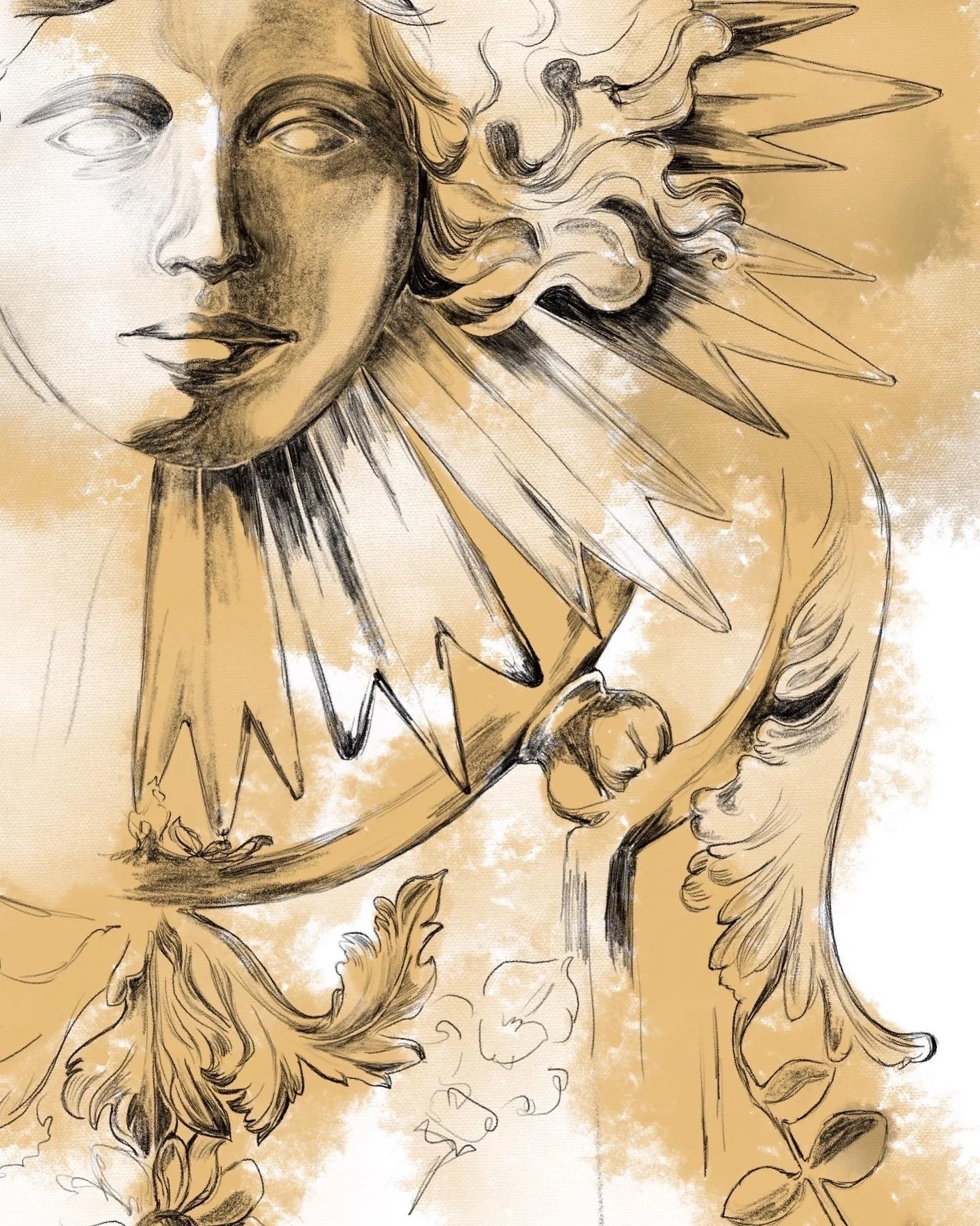 Illustration for Vogue Ukraine with Sisley - mixed media: collage, ink, watercolour, digital.