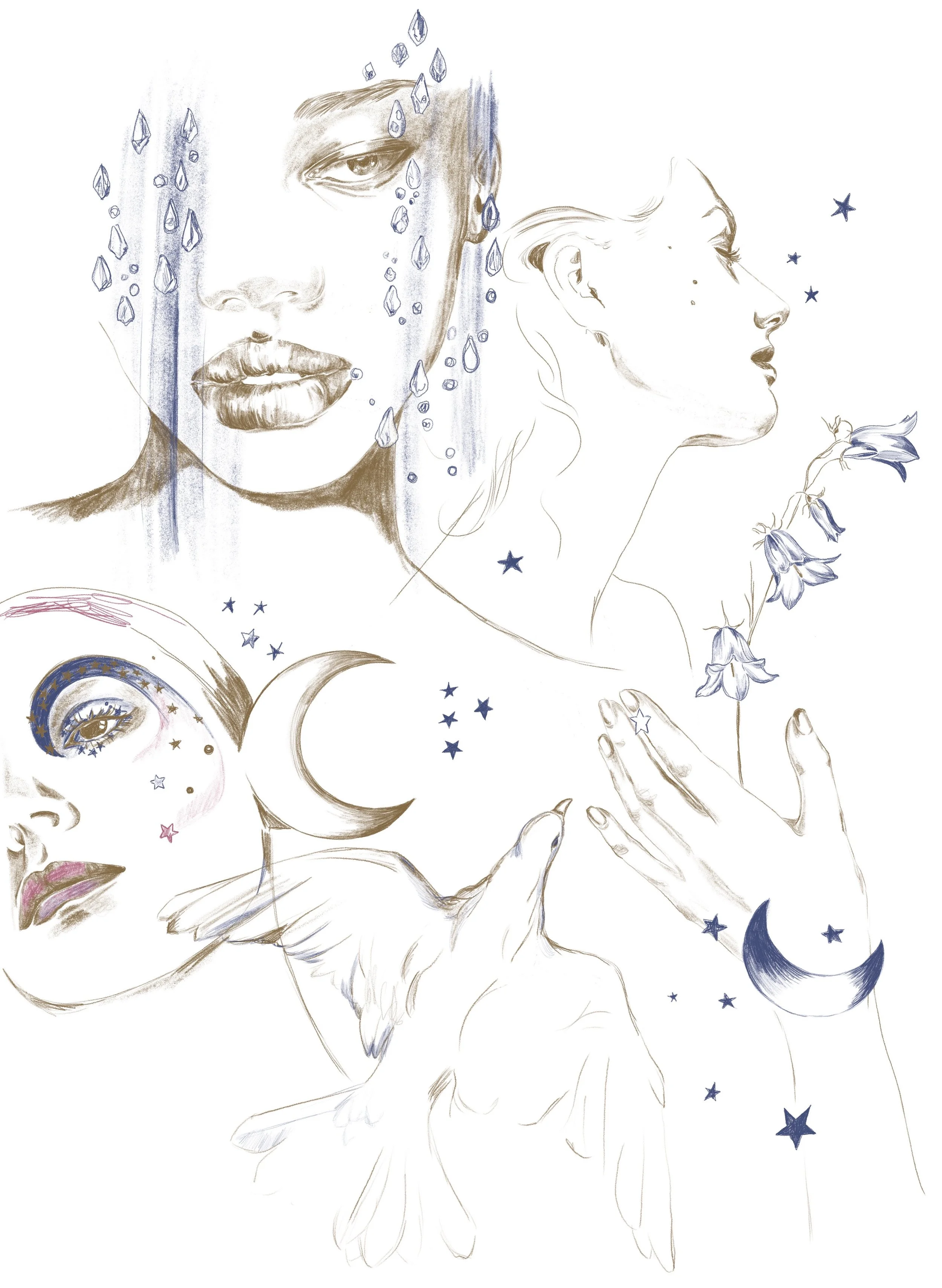 Moon & Sun illustrations for Sisley - Phyto-Blanc La Nuit gift set for Press & Influence